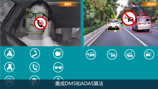 2)DMS+ADAS:集成DMS和ADAS算法,智能MDVR具有识别、预警、录音功能和远程报告功能,以提高车队管理中的驾驶安全性。DMS的人脸识别和司机信息注册,方便车队管理;ADAS的FCW前车碰撞预警功能,提前并主动预警司机避免碰撞;